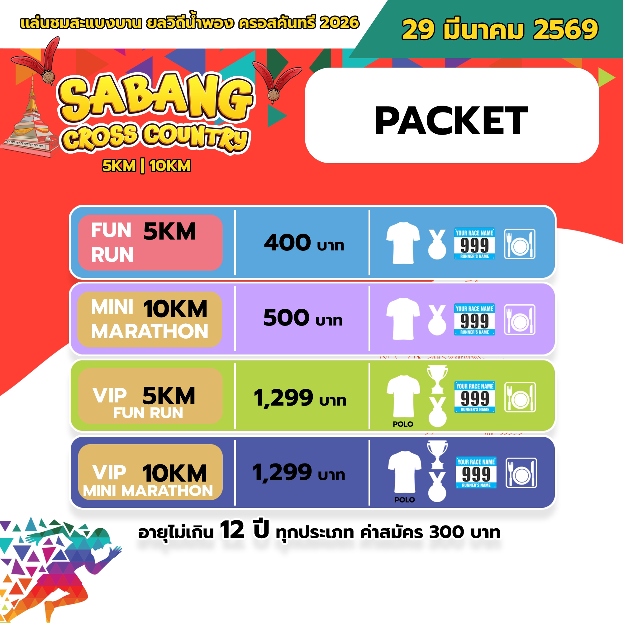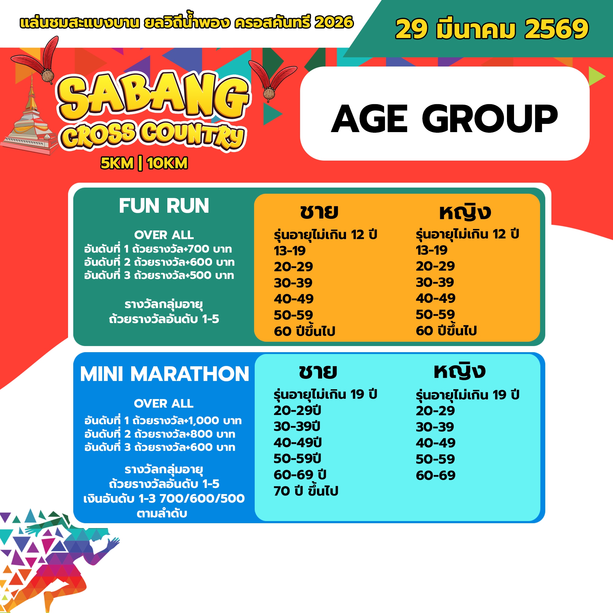 ระยะทาง 10 km. ค่าสมัคร 500 บาท แบ่งกลุ่มอายุดังนี้