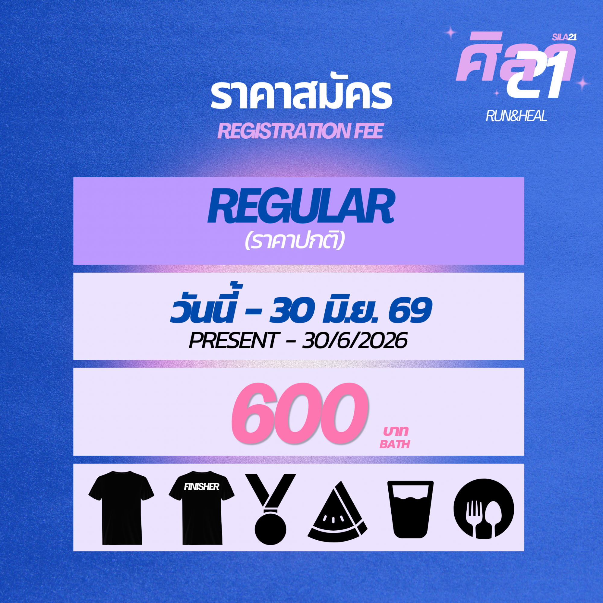 ระยะแข่งขัน ระยะ HALF MARATHON 21KM ค่าสมัคร 600 บาท