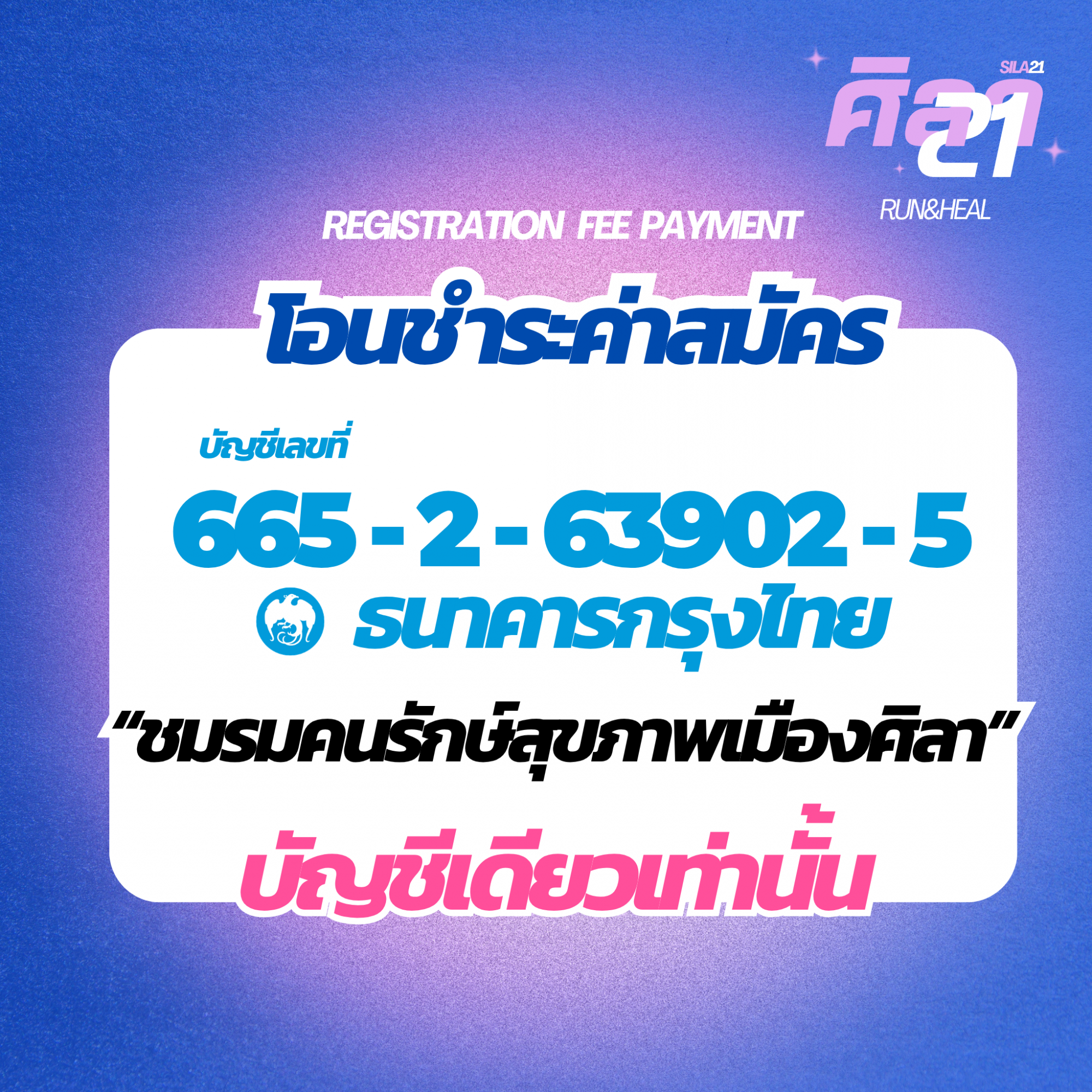 เลขบัญชีโอนชำระค่าสมัคร