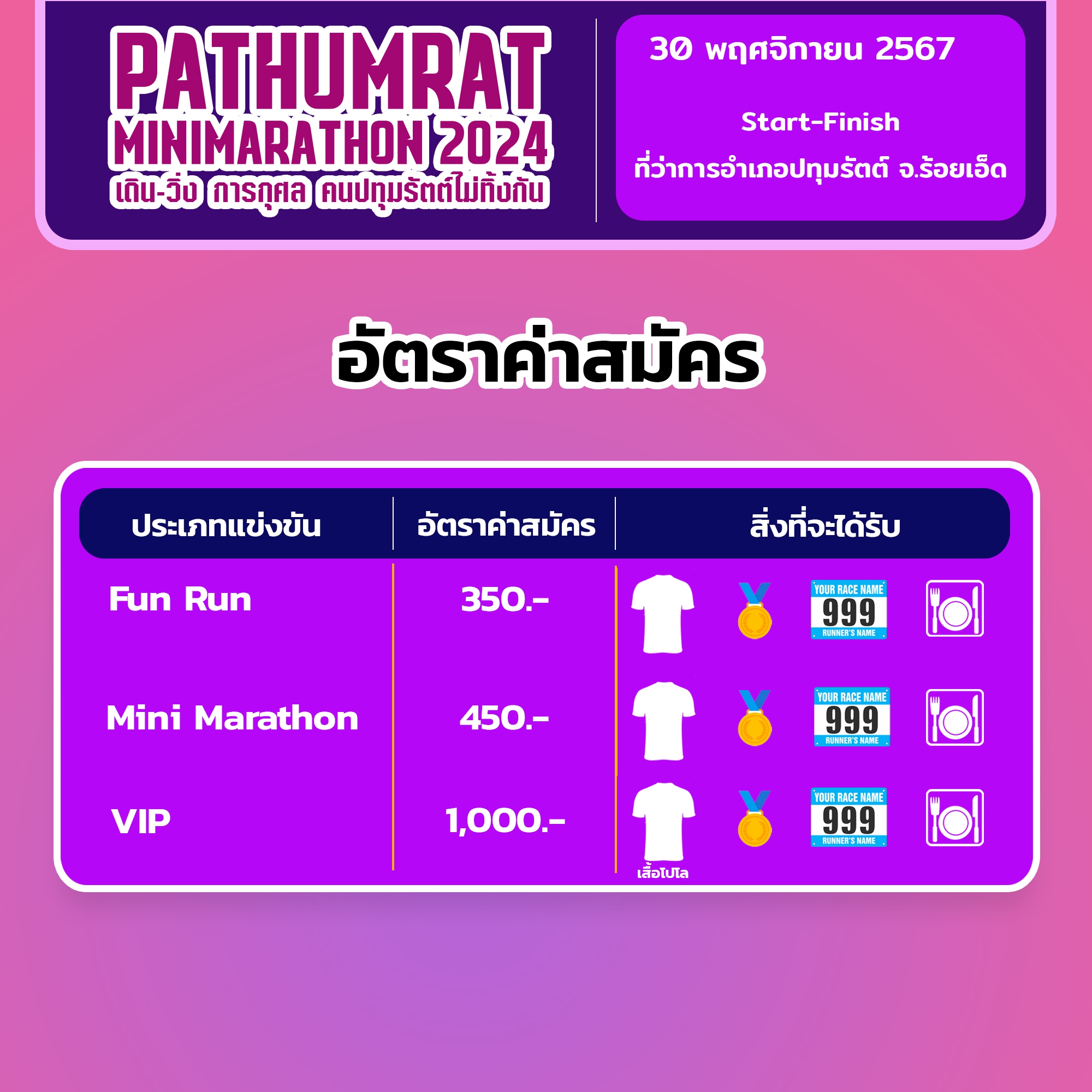 เดิน-วิ่ง การกุศล คนปทุมรัตต์ไม่ทิ้งกัน2024 (ปิดรับสมัครแล้ว)