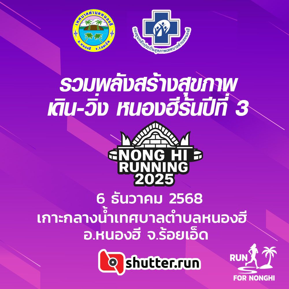 จัดโดย ชมรมเดินวิ่งเพื่อสุขภาพหนองฮี รันนิ่ง สนับสนุนโดย เทศบาลตำบลหนองฮี และ กองทุนหลักประกันสุภาพตำบลหนองฮี
