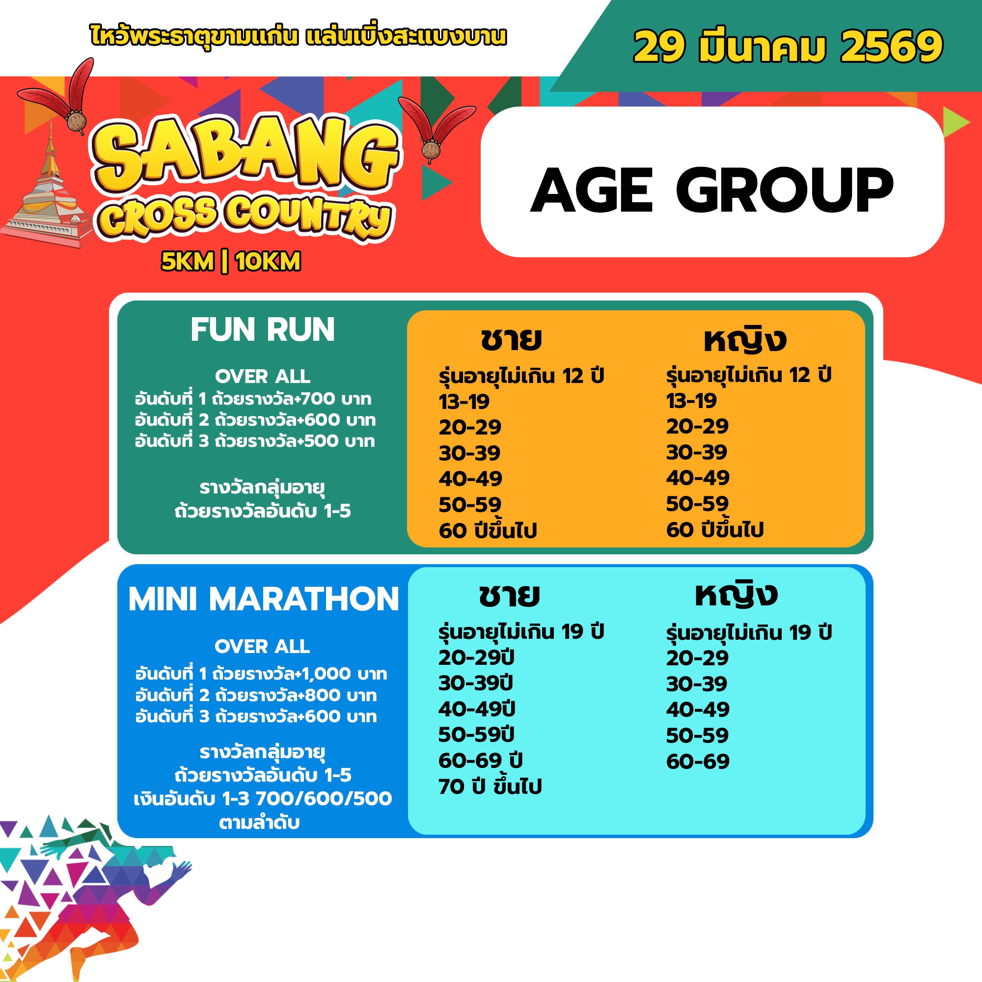 ระยะทาง 5 km. ค่าสมัคร 400 บาท แบ่งกลุ่มอายุดังนี้