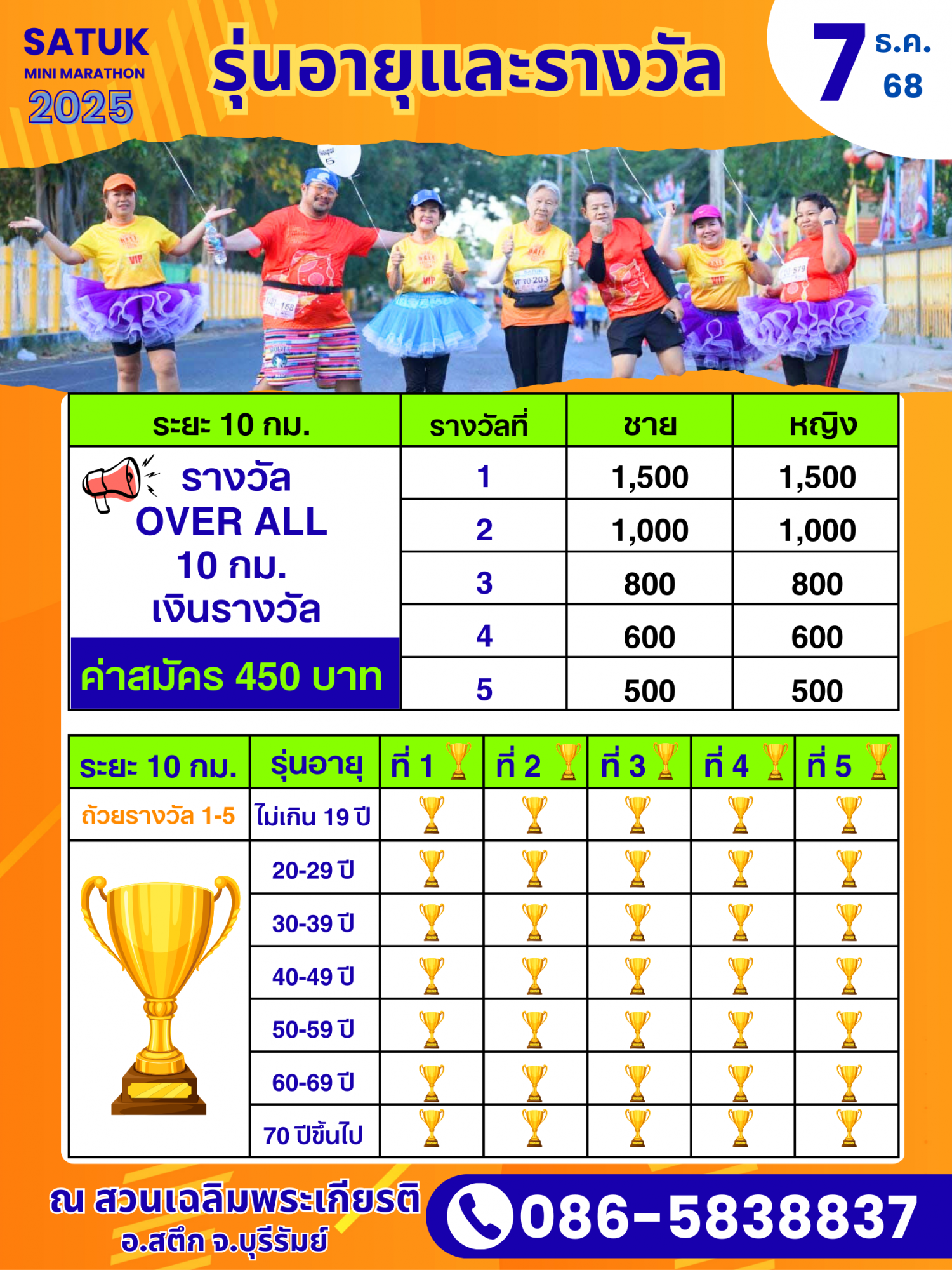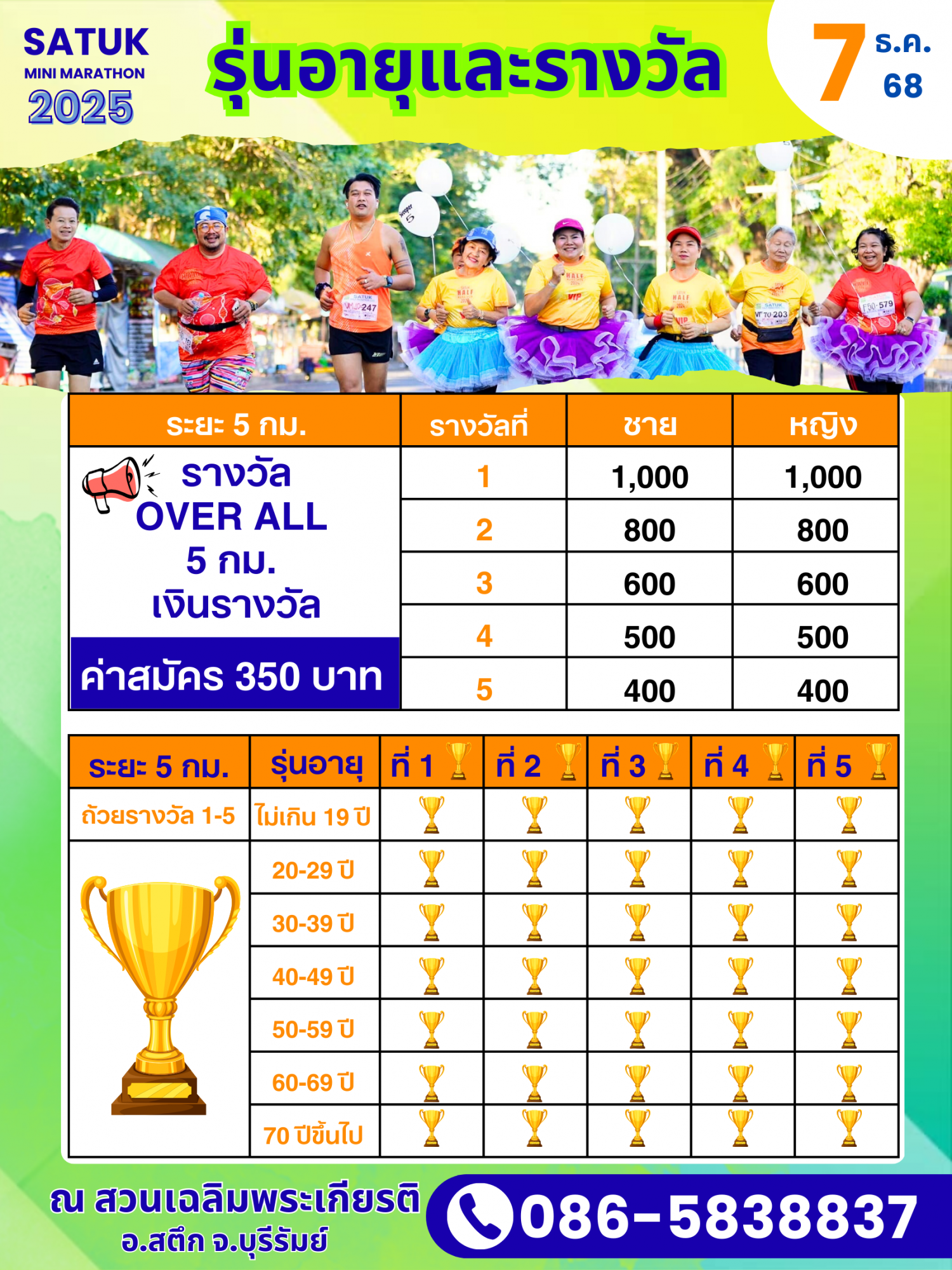 ระยะ 5 กม. รางวัล กลุ่มอายุ ชาย / หญิง