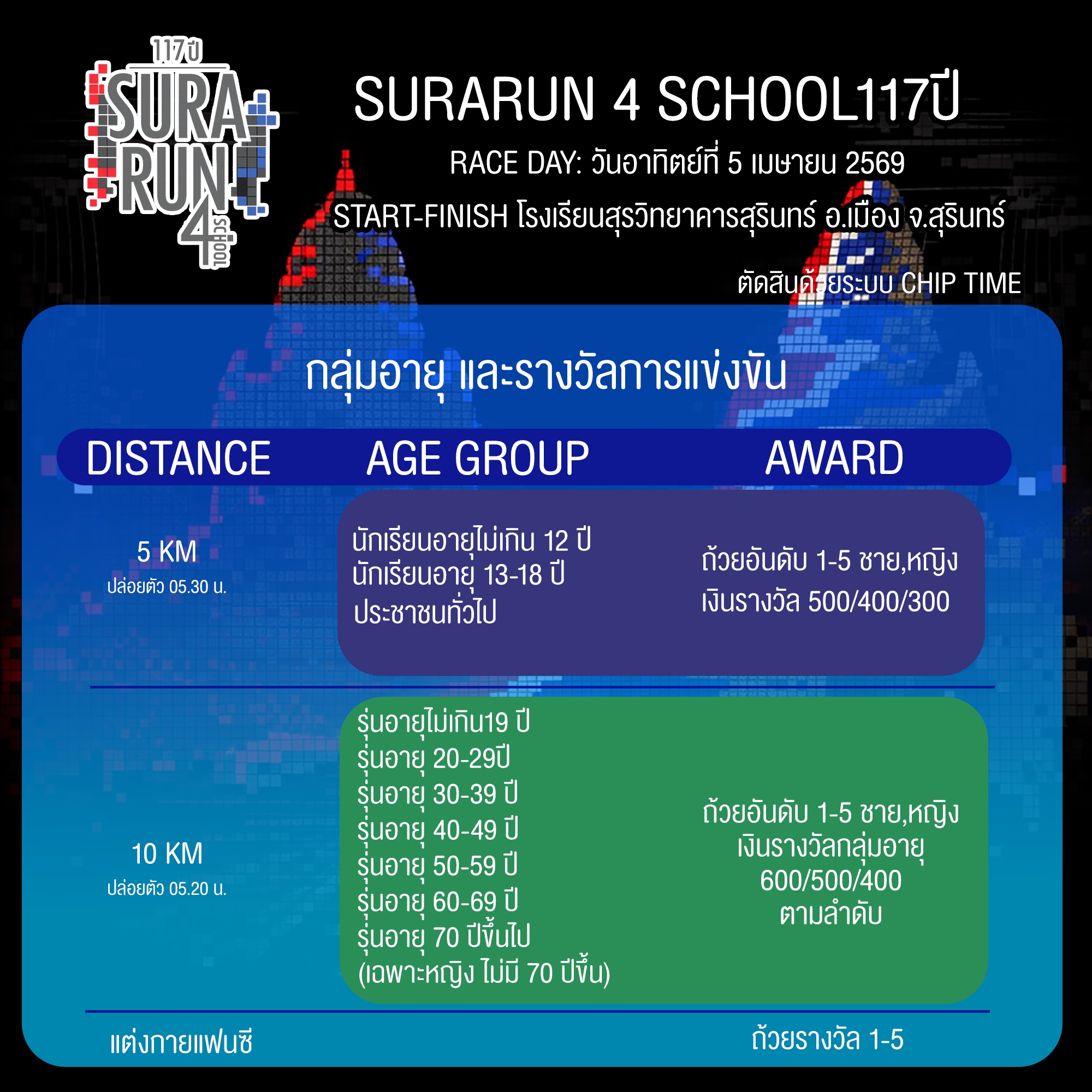Start-Finish : สถานที่จัดงาน ..โรงเรียนสุรวิทยาคารสุรินทร์ อ.เมือง จ.สุรินทร์